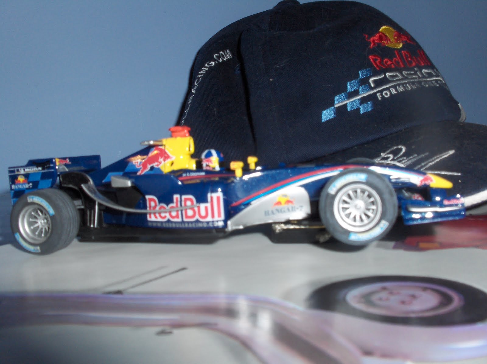 En el mercadillo me compre la miniatura del RB1 pilotada por Coulthard: